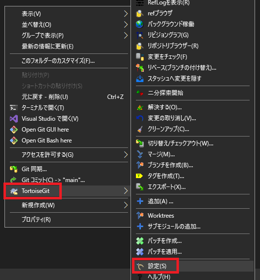 TortoiseGit内部では Git for Windows をコマンド実行しています。